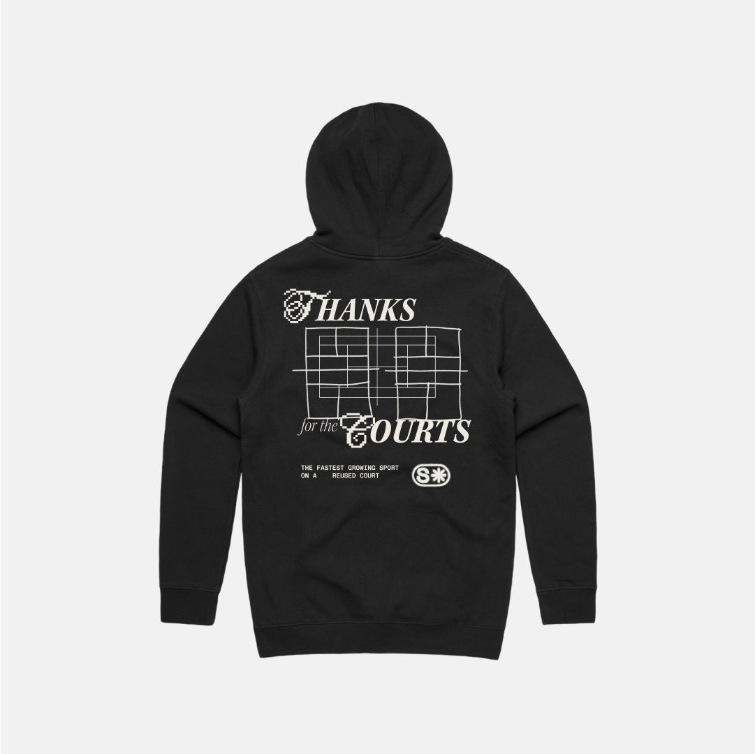 Hey Tennis, thanks for the courts (TFTC). Play the fastest growing sport on a reused court in a hoodie so comfortable you might never want to take it off.